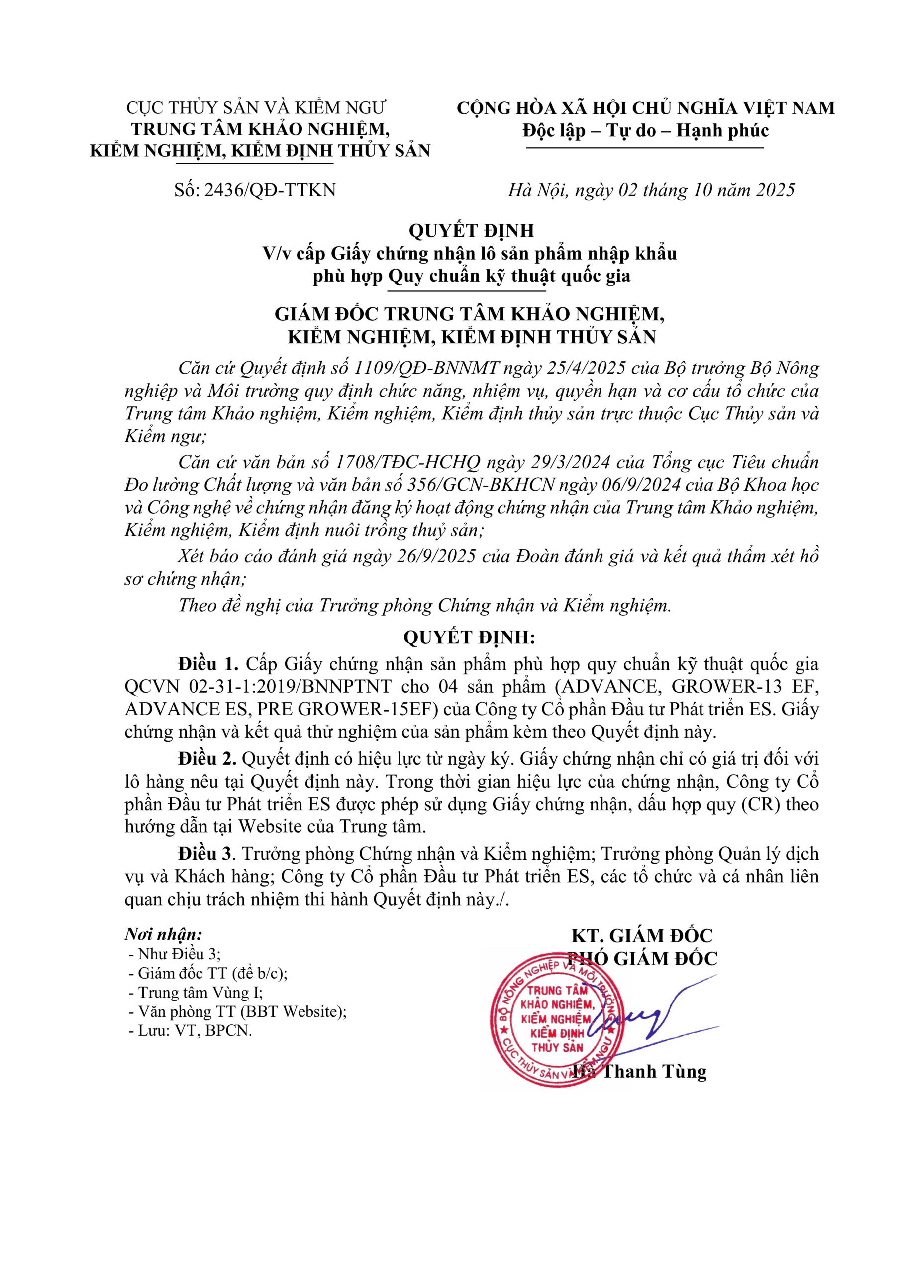 sản, thức ăn tôm, thức ăn tôm giống và cá giống. Điều quan trọng nhất đối với chúng tôi là tạo ra các giải pháp nuôi bền vững, thân thiện với môi trường, mang lại sản phẩm chất lượng và an toàn cho người sử dụng.